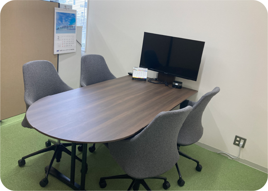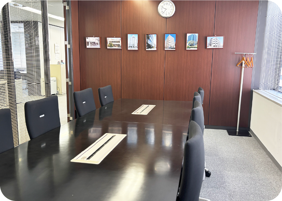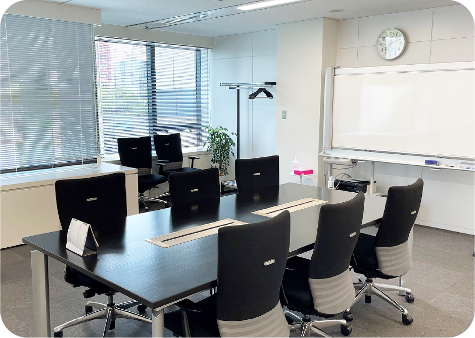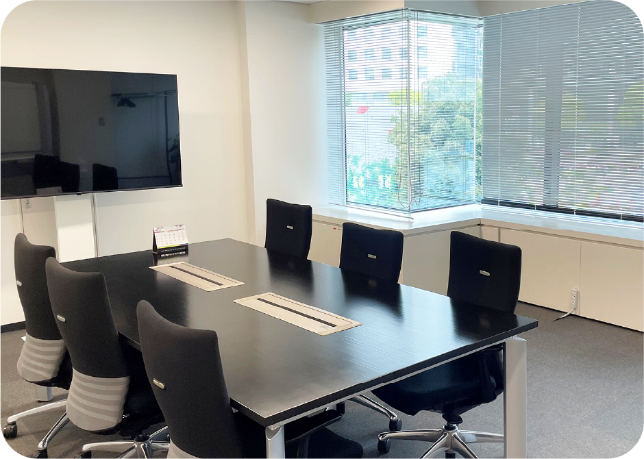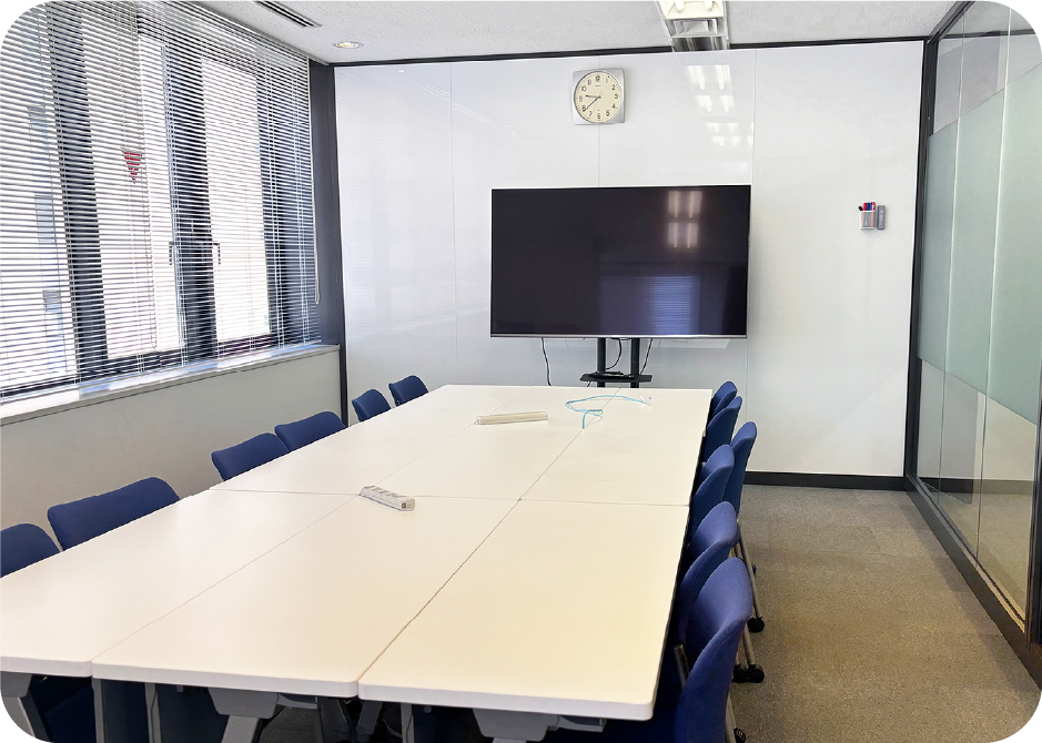 社内会議でよく使われる会議室です。窓が大きくとても開放的です。
