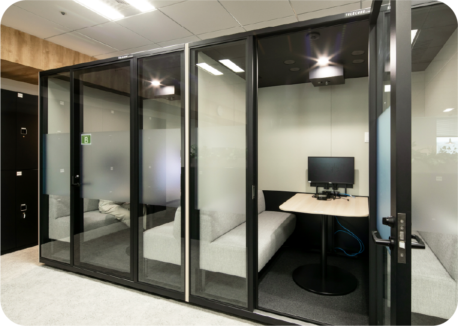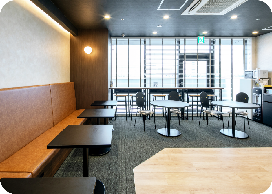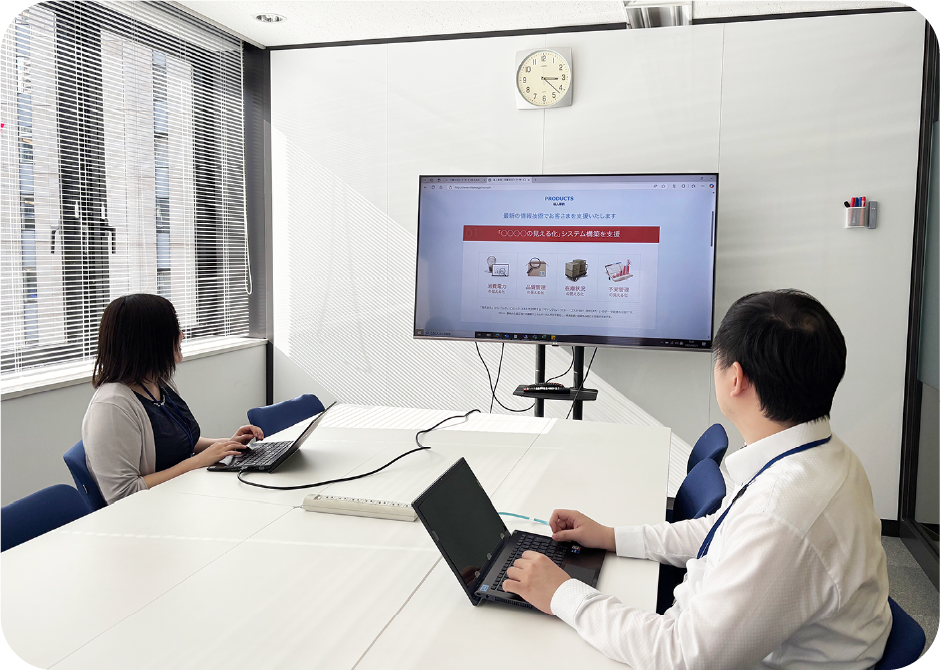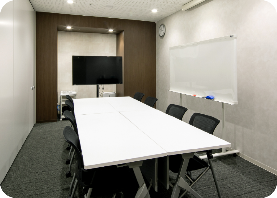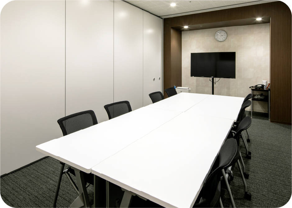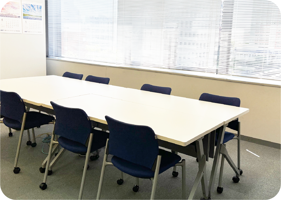 社内会議でよく使われる会議室です。窓が大きくとても開放的です。