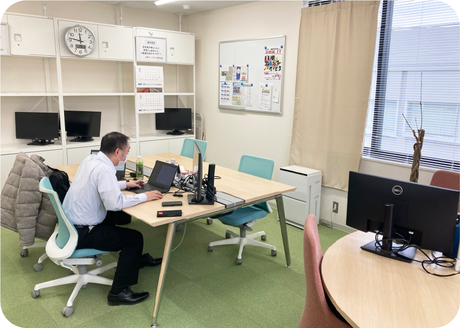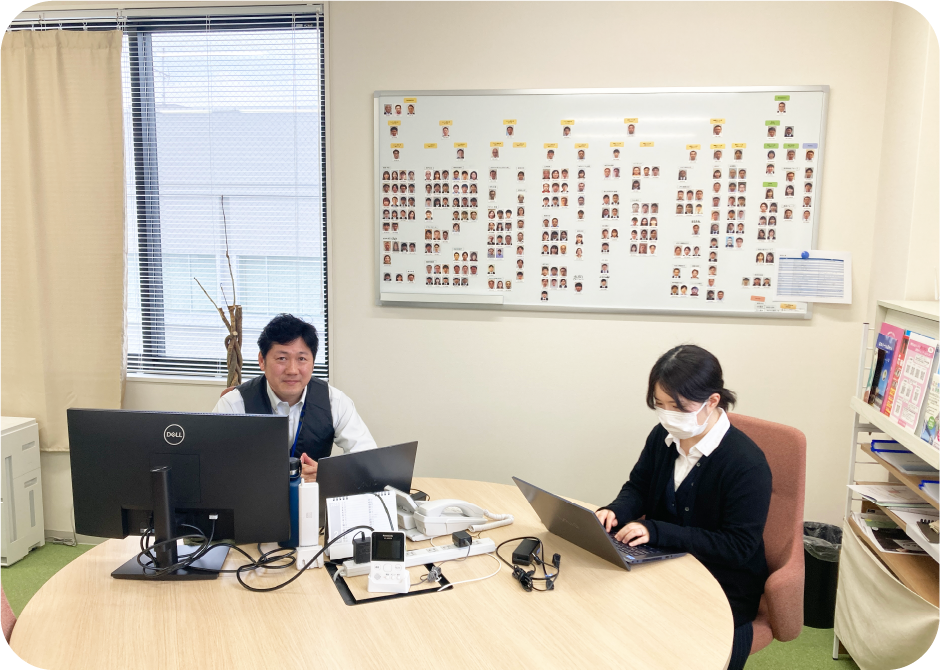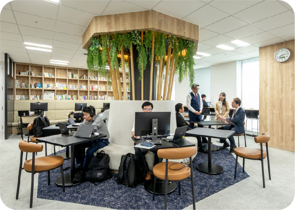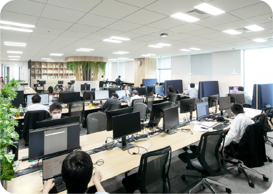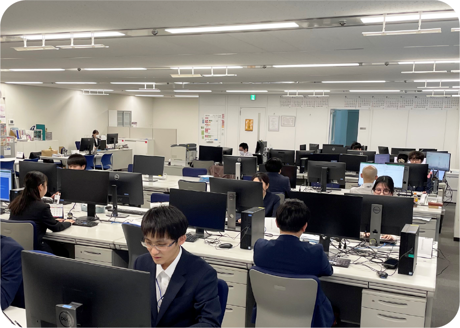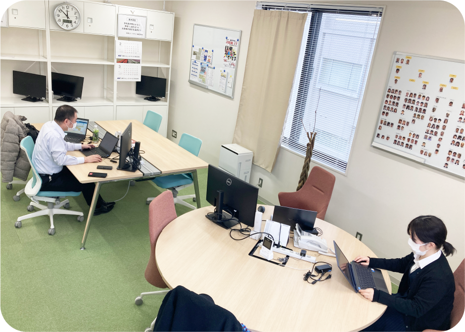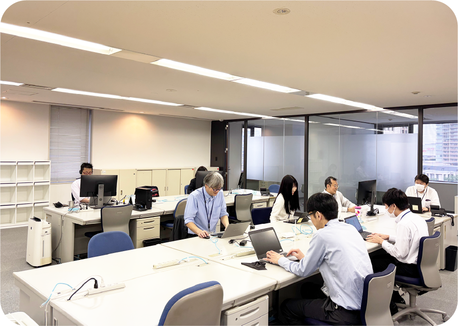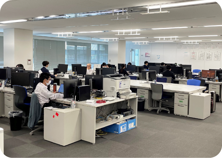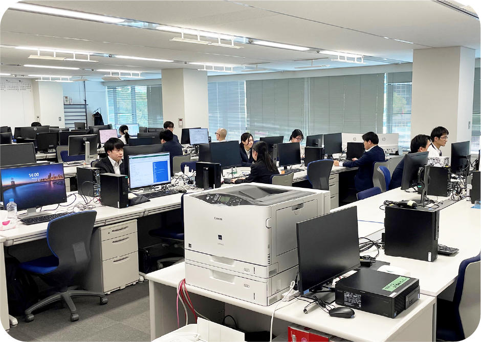 チーム毎の座席で、コミュニケーションをとりながら業務を行います。