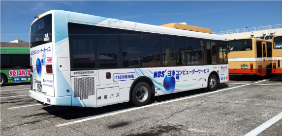 姫路市内に当社オリジナルデザインのラッピングバスを運行し、街なかでのプロモーションや地域とのつながりを広げています。