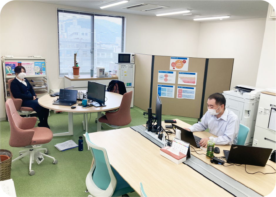 チーム毎の座席で、コミュニケーションをとりながら業務を行います。